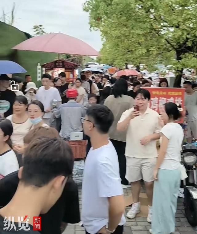 9月24日,鸡排哥摊位前已排起了长队(视频/网络截图)