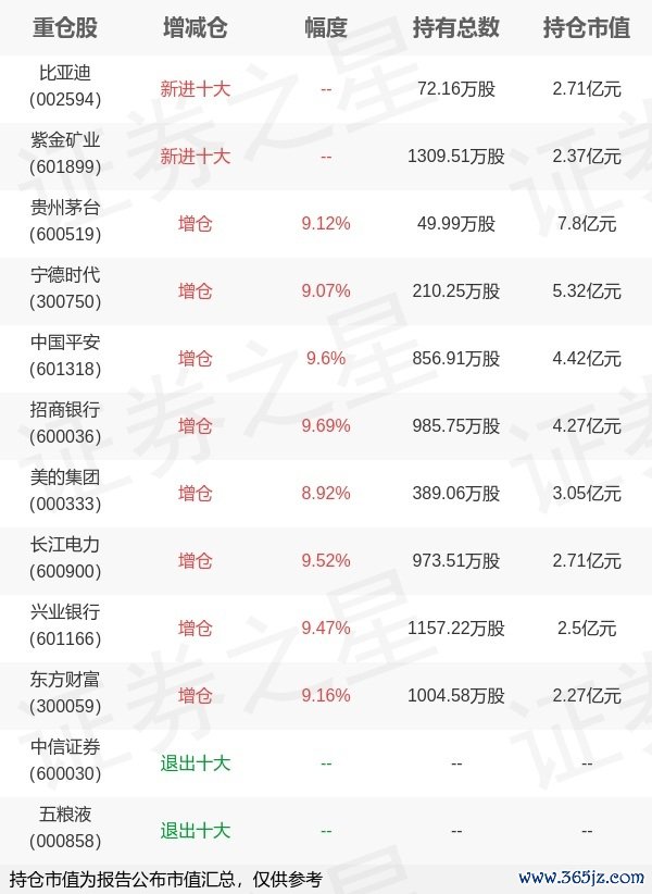 本站消息,4月22日富国基金旗下王乐乐 苏华清管理的富国中证A500交易型开放式指数基金公布一季报。与上一季度相比,该基金前十大重仓股新增比亚迪首胜证券,紫金矿业;并对贵州茅台增仓4.18万股,为该基金第一大重仓股;中信证券,五粮液等退出前十大重仓股;详细数据如下: