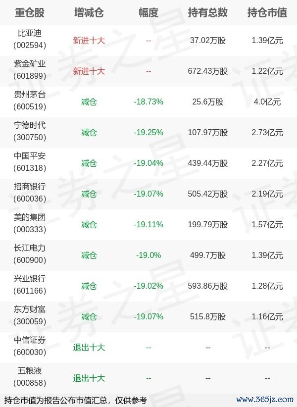 本站消息,4月22日摩根资产管理旗下韩秀一管理的摩根中证A500交易型开放式指数基金公布一季报。与上一季度相比,该基金前十大重仓股新增比亚迪,紫金矿业;其中贵州茅台持仓占比4.34%,为该基金第一大重仓股;中信证券融凯配资,五粮液等退出前十大重仓股;详细数据如下: