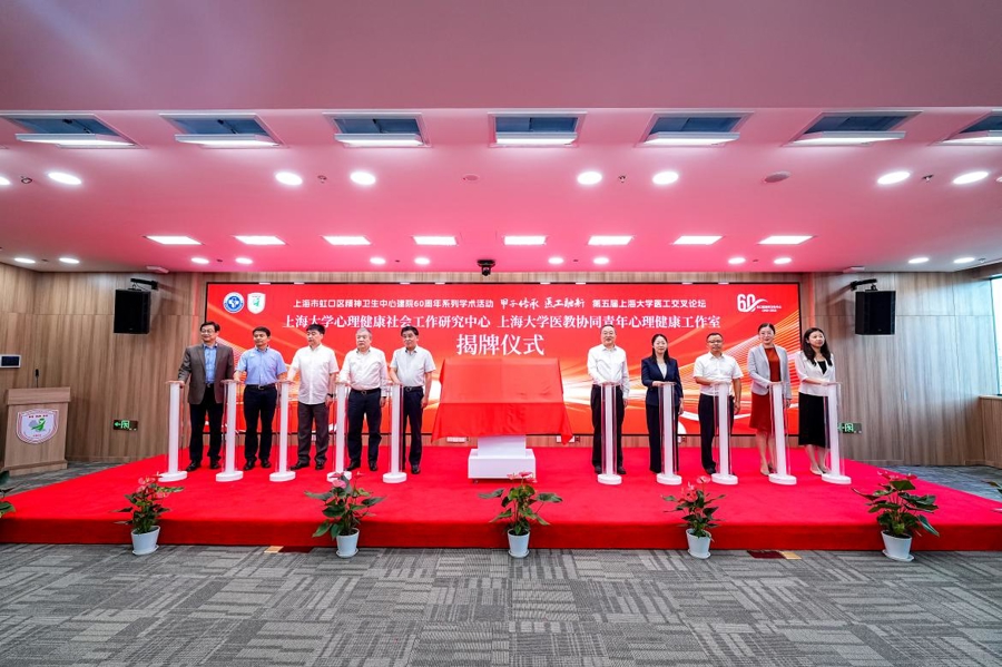 现场同步举行“上海大学心理健康社会工作研究中心”“上海大学医教协同青年心理健康工作室”揭牌仪式。两大平台的成立,标志着虹口区精神卫生中心与上海大学在医教研协同、校院融合发展方面迈出关键一步,将有力推动心理健康服务体系建设与高层次人才培养。