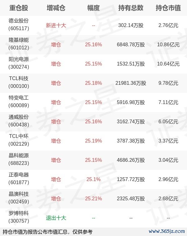 本站消息,4月22日华泰柏瑞基金旗下李茜 李沐阳管理的华泰柏瑞中证光伏产业交易型开放式指数基金公布一季报巨人配资,近1年净值增长率-17.76%。与上一季度相比,该基金前十大重仓股新增德业股份;并对隆基绿能增仓1376.67万股,为该基金第一大重仓股;罗博特科等退出前十大重仓股;详细数据如下: